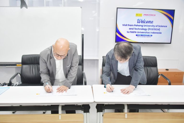 Depok — The Faculty of Mathematics and Natural Sciences (FMIPA) at Universitas Indonesia (UI) has strengthened its academic collaboration with the Department of Chemistry, Pohang University of Science and Technology (POSTECH), South Korea. This collaboration was formalized through the signing of an Agreement on Student, Scholar, and Staff Exchange on Monday (January 12, 2026).
