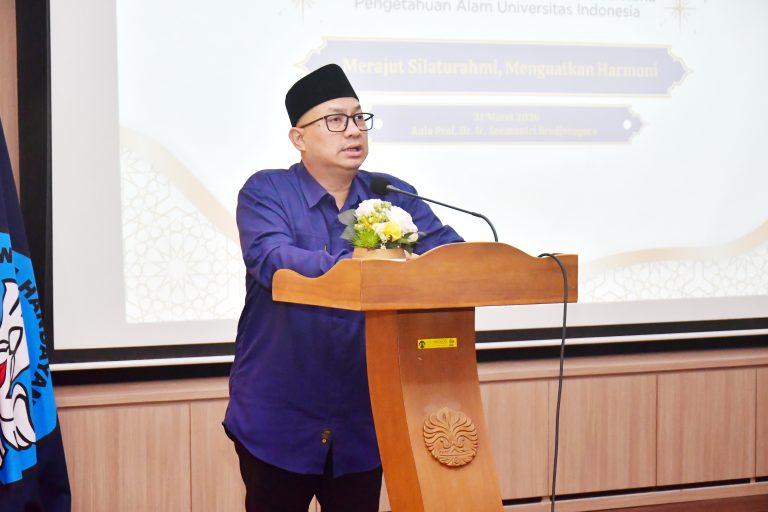 The Faculty of Mathematics and Natural Sciences at Universitas Indonesia (FMIPA UI) held a halalbihalal gathering in celebration of Eid al-Fitr 1 Shawwal 1447 H on Tuesday, March 31, 2026. The event took place at the Prof. Dr. Ir. Soemantri Brodjonegoro Auditorium and was attended by the FMIPA UI community, including members of the academic community and administrative staff.
