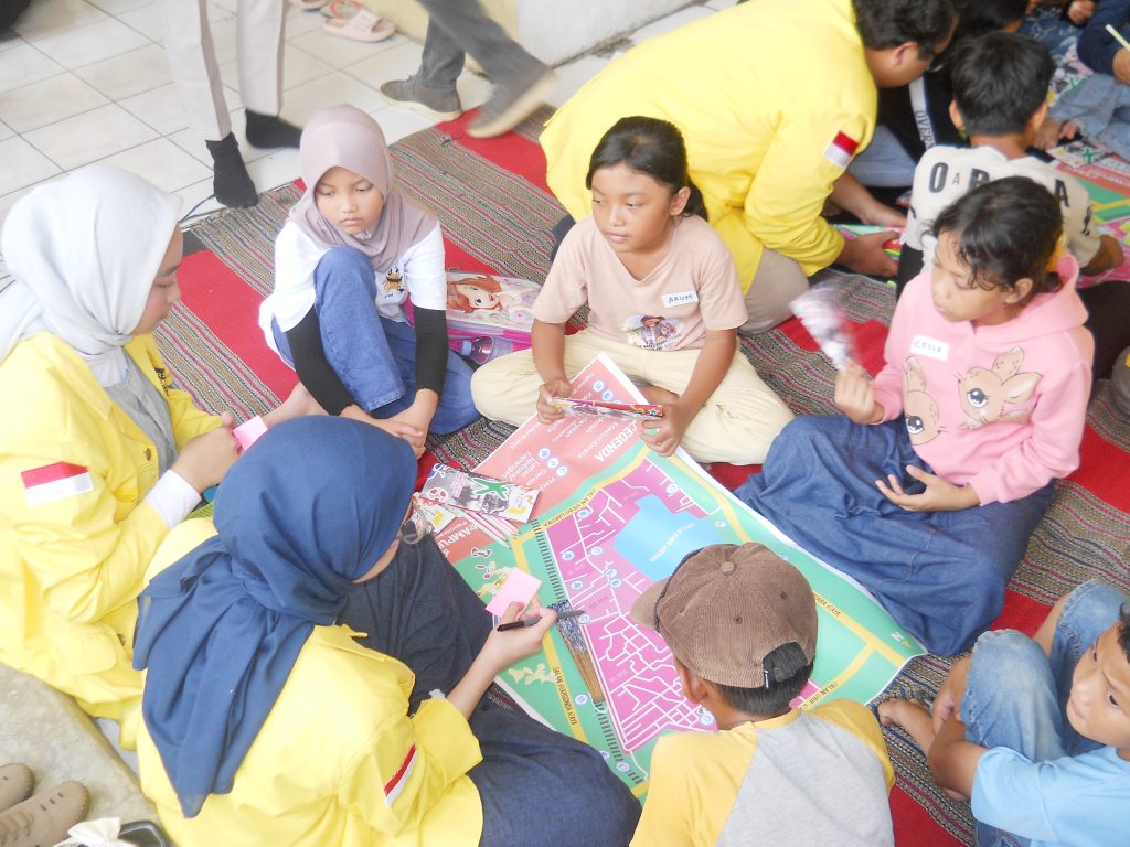 The Head of the Community Service Program, Alif Raya Zulkarnaen, explained that children in Kampung Lio have limited access to safe and adequate play spaces. In fact, play activities play an important role in supporting optimal child growth and development.