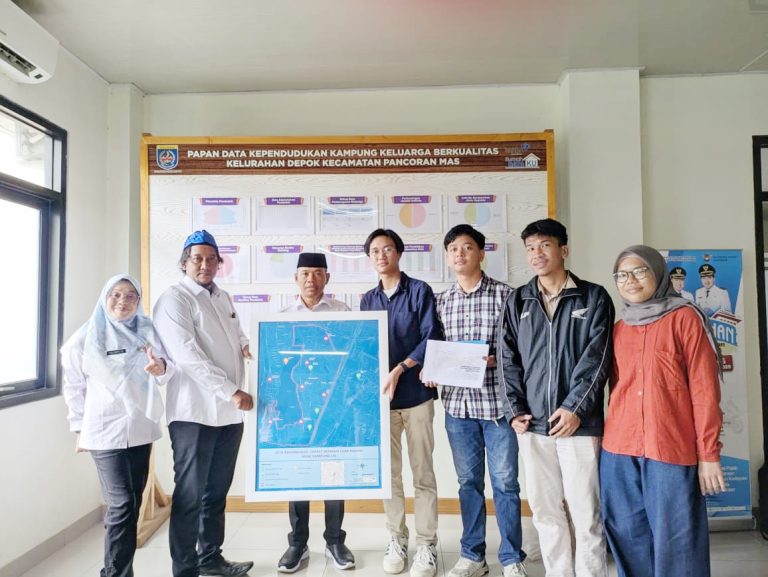 As part of the program’s follow-up, the mapping results and policy recommendation studies were submitted to the Depok Subdistrict Office on Wednesday (28 January 2026) at the Depok Subdistrict Office. The handover of the maps and policy brief documents was conducted by the FMIPA UI and RECEH-POL teams to the Head of Depok Subdistrict, Herman, S.E., and was witnessed by the Head of RW 13 and representatives of the Family Welfare Empowerment (PKK).