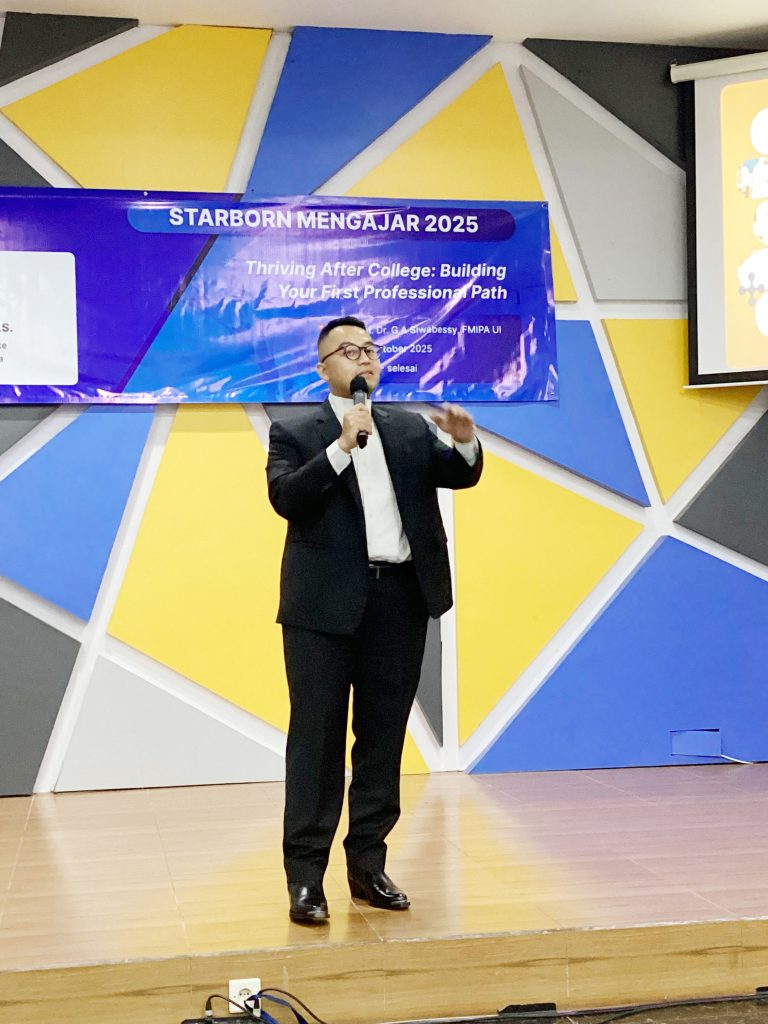 Fakultas Matematika dan Ilmu Pengetahuan Alam Universitas Indonesia (FMIPA UI) menggelar pekan ketujuh UI Geoscience Seminar X Starborn Mengajar 2025 dengan tema “Thriving After College: Building Your First Professional Path”, Senin (6/10). Kegiatan ini berlangsung di Aula Prof. Dr. G.A. Siwabessy, Kampus UI, Depok, dan diikuti oleh 92 mahasiswa dari Program Studi Geologi dan Geofisika.