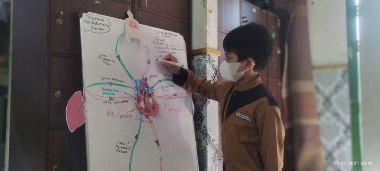 In addition to the presentation of material and practice, the team also provided a session ice breaking to make the learning atmosphere more enjoyable. In the session ice breaking Participants are invited to sing, play the game of circling the sarong, clapping multiples, and tounge twister. Saturday teaching activities were closed with practice questions and closing prayers led by one of the students in turn.