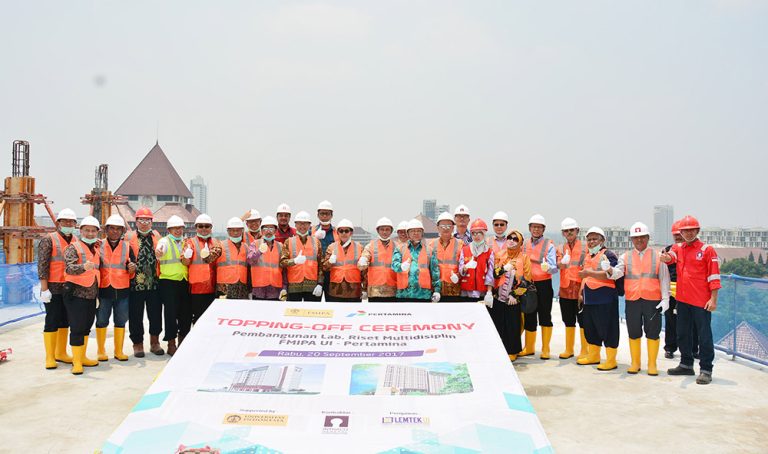 Depok, September 20, 2017.FMIPA UI helda Topping OffCeremony for the Construction of the FMIPA UI – Pertamina Multidisciplinary Research Laboratory. The ceremony was conducted by UI Rector Prof. Dr. Ir. Muhammad Anis, M.Met., Dean of FMIPA UI Dr. rer. nat. Abdul Haris, along with SVP Research & Technology Center Pertamina Herutama Trikoranto.
