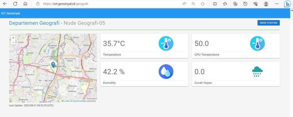 A cross-departmental research team from the Faculty of Mathematics and Natural Sciences, University of Indonesia (FMIPA UI) consisting of Adi Wibowo, Ph.D. (Geography), Dr. Eko Kusratmoko (Geography), Dr. Supriatna, M.T. (Geography), Iqbal Putut Ash Shidiq, PhD (Geography), Dr. Supriyanto (Geoscience), Sukarno Bin Gendon, M.Si. (Geoscience), and Nugroho (Geoscience), developed an automatic local climate monitoring system to monitor air temperature, air humidity, and rainfall in real time. online.